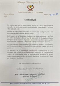 “Le président de la République, Chef de l’État, aussitôt informé a dépêché sur le lieu du drame le gouverneur de la province du Kongo-central pour s’enquérir de la situation et prendre toutes les dispositions pour que les blessés soient acheminés à l’hôpital et que les morts soient identifiés”, écrit le communiqué signé par le Dircab du Chef de l’État Vital Kamerhe.