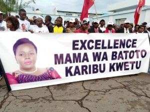 forte mobilisation a été faite. Çà et là on pouvait lire sur les banderoles des messages tels que « Mama ni wetu », traduit en français qui veut dire ‘’Notre maman’’. On pouvait aussi lire davantage de