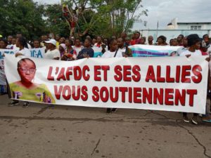 messages : « Excellence mama wa batototo, karibu kwetu », « l’AFDC etses Alliés vous soutiennent »…