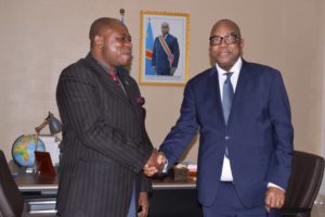 Le Vice-premier ministre en charge de l’intérieur, sécurité et affaires coutumières Gilbert KANKONDE a reçu ce mercredi 26 février 2020, en audience officielle, le savant congolais, le Dr Blaise Wamba Yetshi, Coordonnateur National du programme national des recherches spatiales et technologiques, PNRST venu lui presenté ses resultats des recherches concrets et appliqués.
