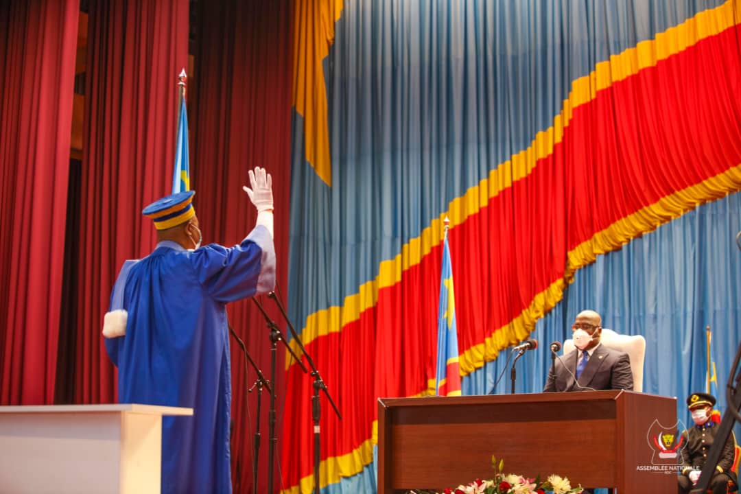 Conformément à la lois organique portant organisation et fonctionnement de la cour constitutionnelle, le procureur général près la cour constitutionnelle, Mukolo Nkokesha a prêté serment devant le président de la République Félix-Antoine Tshisekedi, les deux présidents de deux chambres à savoir Alexis Thambwe Mwamba et Jeanine Mabunda ainsi que le conseil supérieur de la magistrature, selon les dispositions recommandées par le comité de pilotage contre la covid19.
