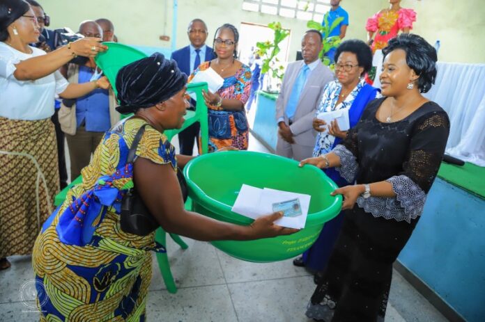 La ministre de l’Emploi, travail et prévoyance sociale Claudine Ndusi a présidé le jeudi 12 Mai dernier à la paroisse Don Bosco de Masina la cérémonie de la remise de l’aide micro-entrepreneurs de la Banque Africaine de développement (BAD), par le biais du Programme cadre de la création d’emplois et de revenus PROCCER. Plus de 400 femmes du district de la Tshangu ont été bénéficiaires de ce projet. Cet aide était composé des kits composés d’une chaise, une table et un bassin, accompagnés d’une enveloppe de 300 USD.