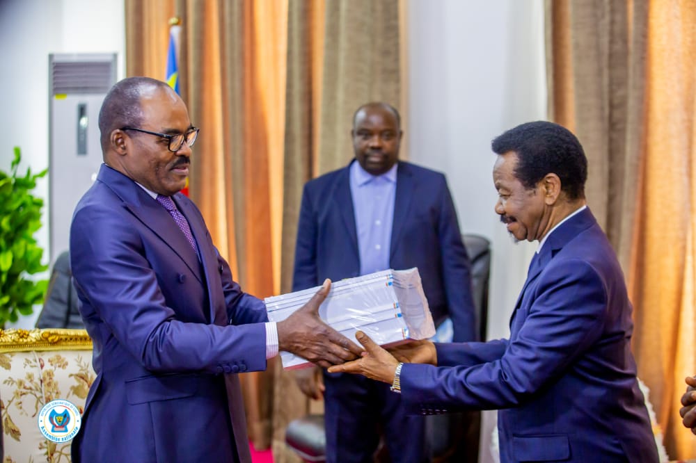 Le ministre des finances Nicolas Kazadi a déposé le projet de loi portant reddition des comptes de la loi de finances n° 20/20 du 28 décembre 2020, pour l’exercice 2021 telle que modifiée et complétée par la loi de finances rectificative n° 21/028 du 31 décembre 2021, pour l’exercice 2021 auprès du président de l’Assemblée nationale Christophe Mboso Nkodia ce mardi 14 juin.