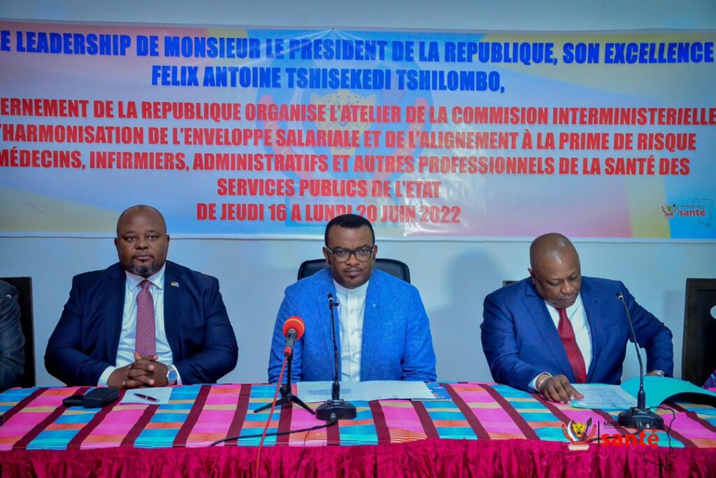Très attendus, notamment par les agents et fonctionnaires de l’état du secteur de la Santé, les travaux de l’Harmonisation de l’enveloppe salariale et de l’alignement à la prime de risques des médecins, des médecins, infirmiers, administratifs et autres professionnels de la Santé œuvrant dans les services publics de l’Etat en République Démocratique du Congo ont été lancés, ce samedi 18 juin 2022 au Village Venus, à Bibwa dans la commune de la N’sele, à Kinshasa. C’est Jean-Pierre LIHAU, Vice-Premier Ministre, Ministre de la Fonction publique, Modernisation de l’administration et Innovation du Service public qui a procédé au lancement officiel de ces assises organisées par le Gouvernement de la république sous le leadership du Président de la République, Félix Antoine Tshisekedi.