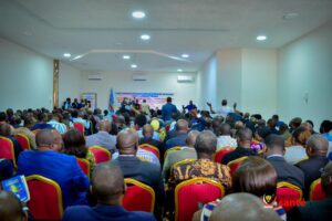 La cérémonie d’ouverture de cet atelier a été marquée par la présence des ministres de la Santé Publique, Hygiène et Prévention, Dr Jean-Jacques Mbungani Mbanda ; de celui du Budget, Aimé BOJI, des vice-ministres de la Santé Publique et de celui du budget, des délégués syndicaux du secteur de la Santé ainsi que des Secrétaires généraux de l’administration publique.