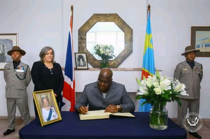 You are at:Home » Décès de la Reine Élisabeth : Félix Tshisekedi signe le livre des condoléances à l’ambassade de la Grande Bretagne.