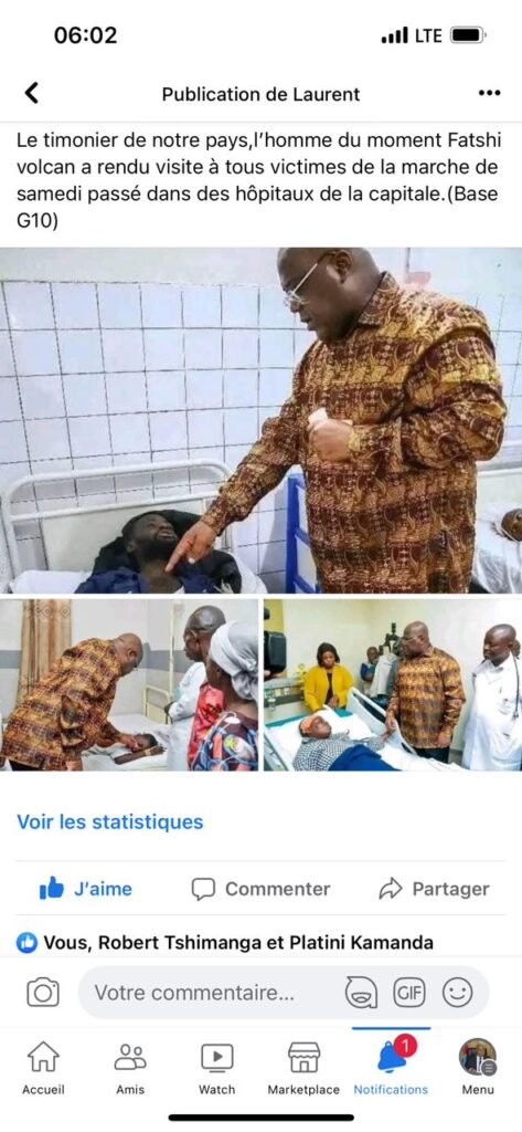 Alors qu’il a fait la ronde de centre de santé qui ont accueilli les victimes, le chef de l’État a visité en premier lieu le jeune Roger Masasu dit Junior dont la brutalité de l’ arrestation est unanimement condamnée.