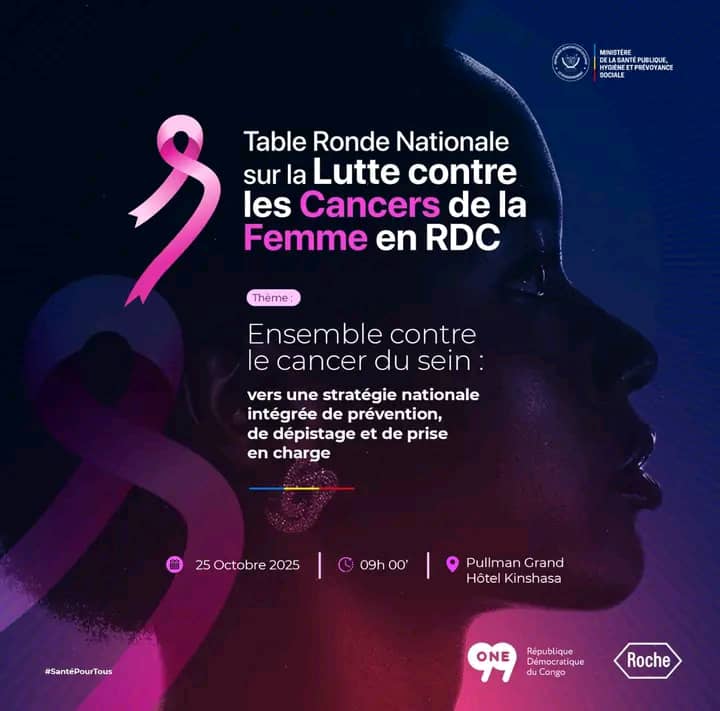 Le ministère de la santé publique, hygiène et prévoyance sociale, annonce l’organisation de la première table ronde nationale sur la lutte contre les cancres de la femme, en partenariat avec le centre national de la lutte contre le cancer (CNLC), ce samedi 25 octobre 2025 à Kinshasa.